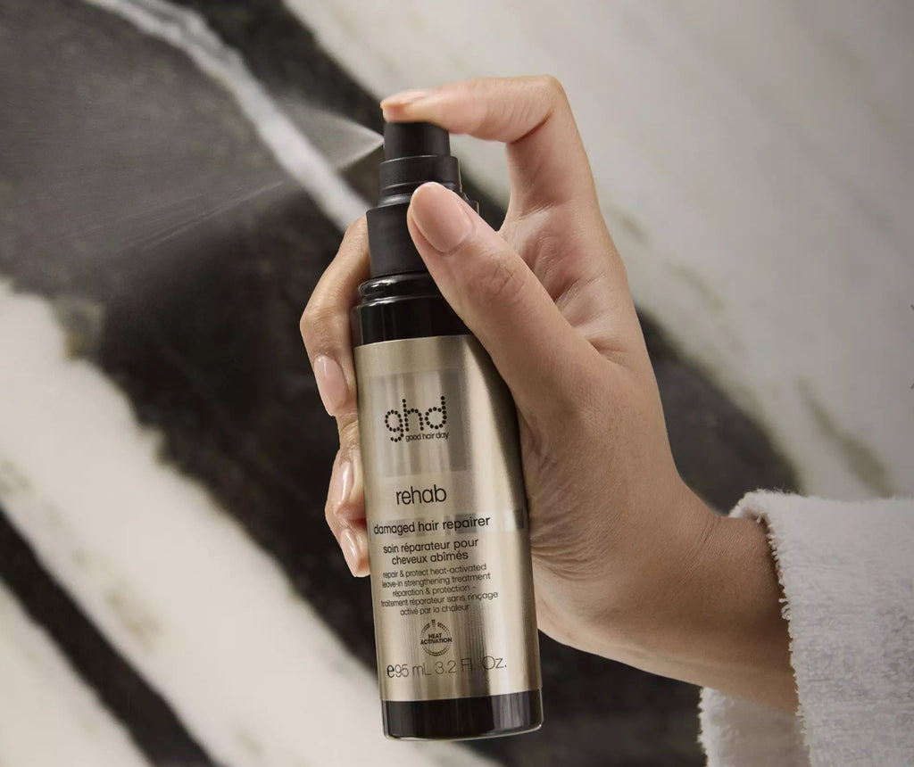 Le spray ghd Rehab pour cheveux abimés peut s’utiliser une fois par semaine ou 2 à 3 fois pour un traitement plus intensif.